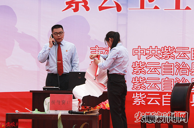 9:20【安顺新闻网】 启动仪式开始前,紫云自治县法院、检察、公安、司法、消防等部门工作人员在现场设置了咨询、展示台。