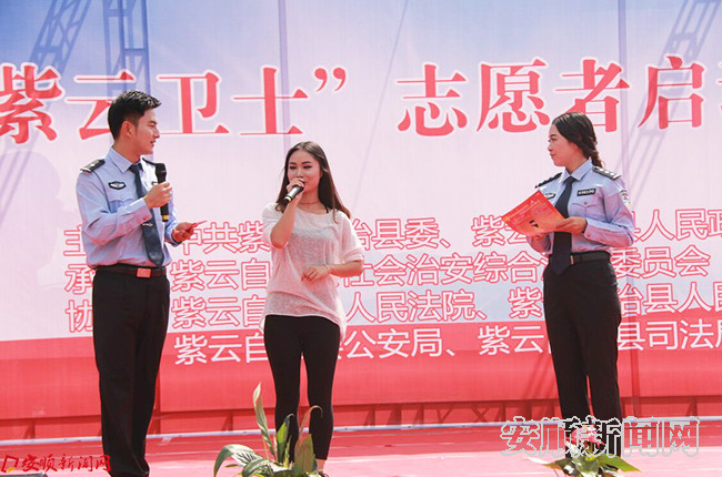 10:18【主持人】紫云卫士保平安·平安共建促和谐,这是我们今天活动的主题,我们号召全民共同加入“紫云卫士”志愿者,共同参与“平安紫云”建设。现场的观众朋友们,可以根据工作人员的指引,扫描“紫云卫士”志愿者微信群的二维码,成为“紫云卫士”志愿者。