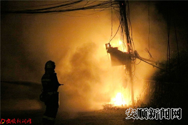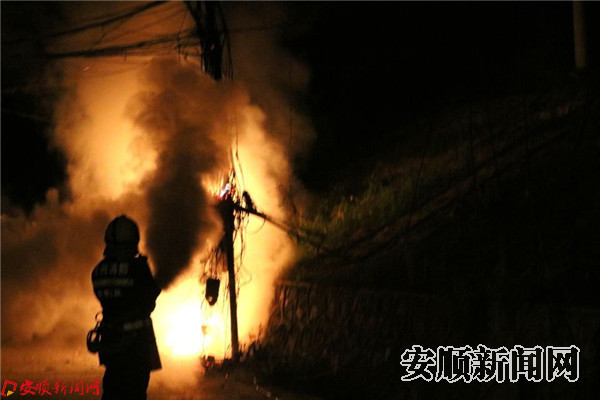 本网讯 10月6日19时35分许,紫云自治县客运站附近,团坡小区一电表箱燃烧引起大火。