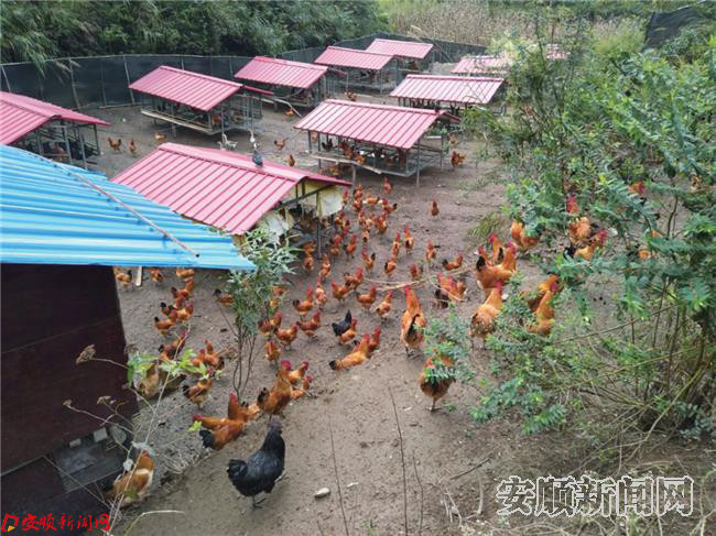 今年,徐敏萌生了山坡放养林下生态鸡的想法,在离家500米远的一个山坳里建起了10余个鸡舍,开始发展林下养鸡。