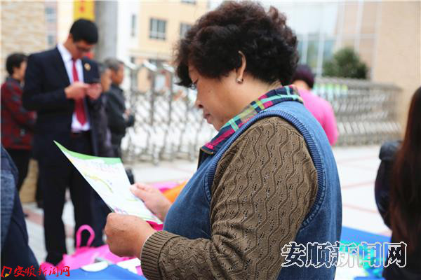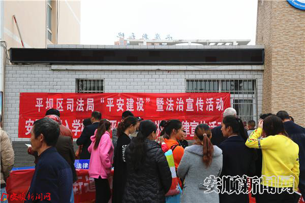 10月19日,平坝区司法局组织普法宣传员到平坝区实验小学开展“送法进校园”法治宣传活动。为了不影响学生正常上课,平坝区司法局普法宣传员将法律资料提前装入宣传袋中,利用学生放学时间,在学校门口向学生发放资料以便带回家中让家长一起学法。活动当天,许多前来接孩子的家长也围在宣传桌前阅读宣传资料。