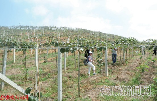 本网讯 走进西秀区黄腊乡的九湾河生态农业观光园,沿着起伏山峦的标准化猕猴桃基地成方成畦、美感律动,生机盎然的山野生态景象一眼望不到边;藤蔓架下,一串串浓绿的猕猴桃顿时让人情不自禁地勾起舌尖上的食欲,阵阵果香沁人心脾,伸手可摘,抬头可赏。