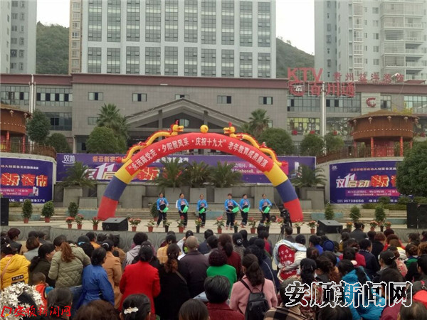 本网讯 10月26日,紫云自治县在亚鲁王广场举办了以“永远跟党走·夕阳展风采·庆祝十九大”为主题的全县老年教育成果展演。