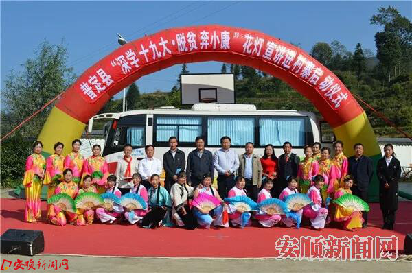本网讯 为进一步向全县农村地区传达十九大精神,聆听党的声音。10月30日,普定县“深学十九大·脱贫奔小康”花灯宣讲进村寨活动在猴场乡老甲寨启动,市委常委、普定县委书记徐德祥出席启动仪式。