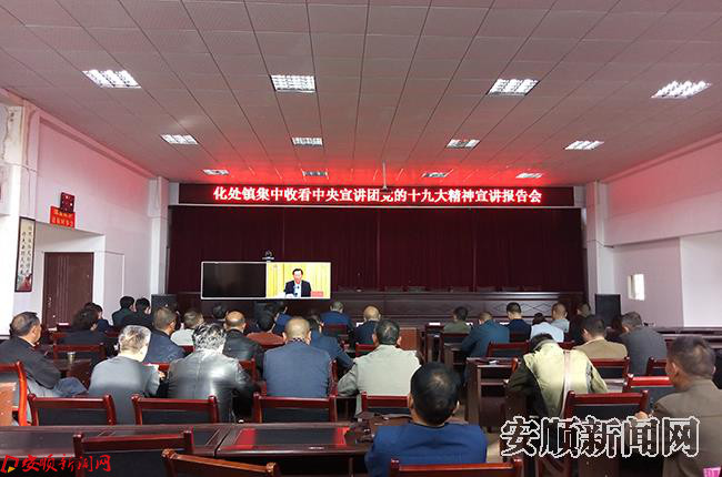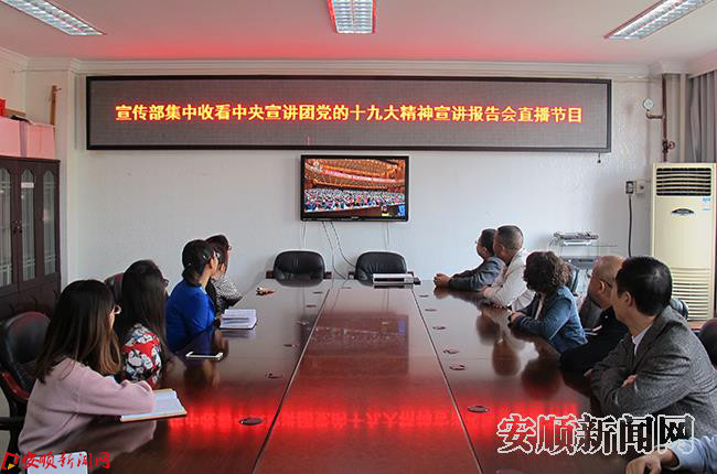 在普定县马官镇,广大干部职工围坐在电视机前,怀着期盼,聆听中央宣讲团的报告,大家纷纷表示,一定会跟随党中央的步伐,团结围绕在以习近平同志为核心的党中央周围,做好基层干部本职工作。