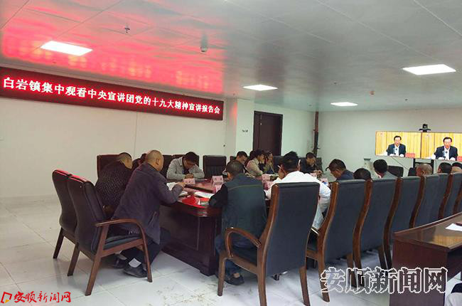 普定县白岩镇也第一时间关注了中央宣讲团党的十九大精神宣讲报告。大家一致表示,不忘初心,积极贯彻落实党的十九大精神,以习近平新时代中国特色社会主义思想为指引,干事创业,为决战决胜脱贫攻坚,为中国梦的早日实现努力奋斗。