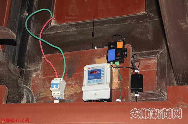 记者在王若飞故居临西秀区北街大门内侧木质结构墙体上看到,一台用电安全隐患监管装置正在运行中。随行的该装置安装维保单位安顺城投宜安公司工作人员告诉记者,该设备名叫灭弧式电气防火保护装置,装置与附着在输电主线上的传感器相连接,可以实时监测该电路回路中电线是否有火灾安全隐患,一旦线缆温度异常、电弧故障等情况,设备将自动把接收的数据传输到有人控制的网络终端,并自动发出报警信息,提醒王若飞故居管理处安保部人员及时处置隐患。