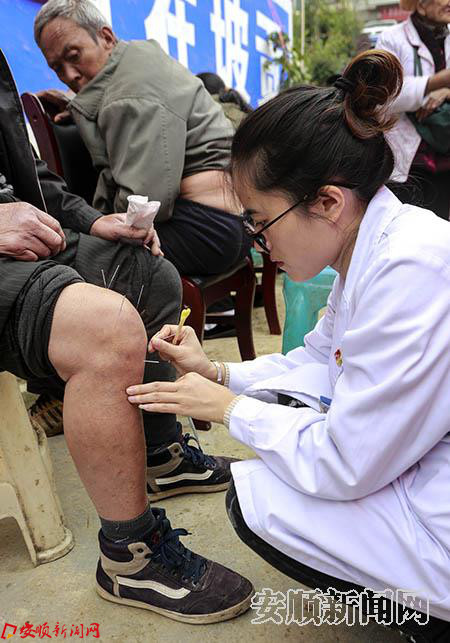 医疗专家在给贫困群众免费进行针灸治疗