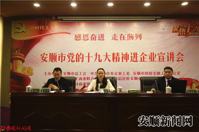 本网讯 11月22日,由安顺市总工会、安顺市委企业工委、安顺市政府金融办、安顺市工商业联合会以及省联社安顺审计中心联合主办的新时代工人讲习所,安顺市“感恩奋进·走在前列”党的十九大精神进企业宣讲活动走进安顺农商银行。