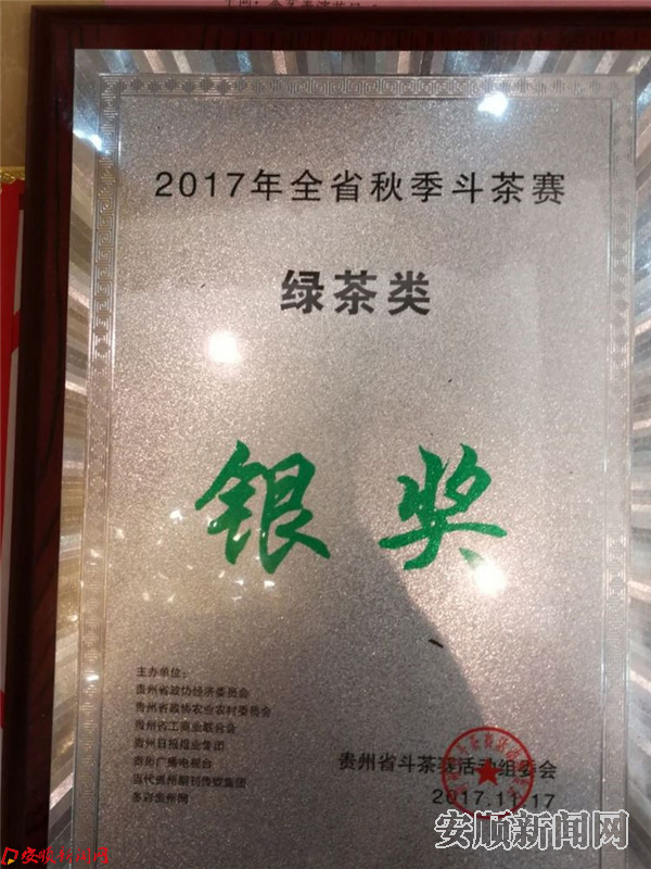 本网讯 11月30日,记者获悉,在2017年贵州省秋季斗茶大赛决赛上,镇宁自治县江龙镇出产的“浪风关白沙茶”斩获银奖。