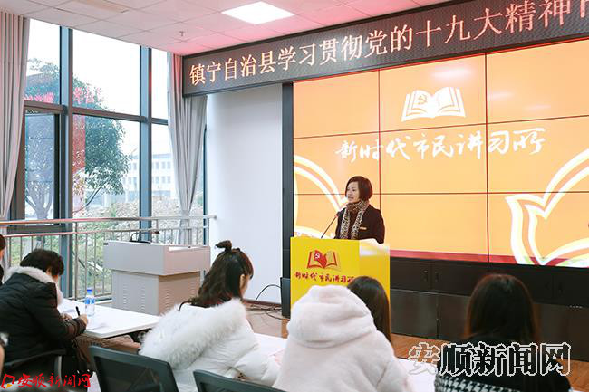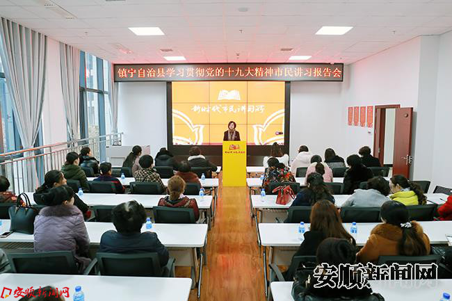 本网讯 为贯彻落实省委、市委的统一安排部署,全方位推动党的十九大精神讲习工作,12月7日,镇宁自治县在举行“新时代农民(市民)讲习所”授牌仪式后,随即组织开展了第一场县级讲习活动。本场讲习活动由该县妇联组织实施,来自镇宁自治县各社区、街道办的基层妇女工作负责同志、妇女代表等共60余人参加活动。