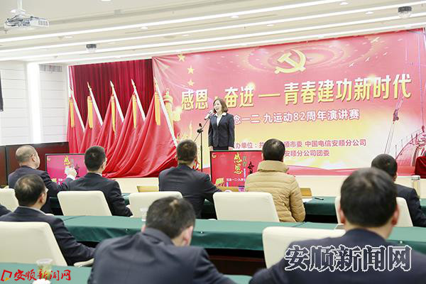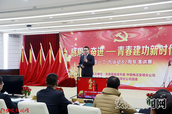 本网讯 12月8日,由安顺团市委、安顺电信分公司团委联合举办的“感恩·奋进——青春建功新时代”主题演讲比赛在安顺电信大楼举行。共有来自贵阳电信分公司团委和安顺电信分公司团委的二十名选手参加比赛。