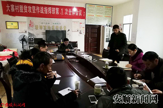 本网讯 12月12日,记者来到平坝区安平街道办事处大寨村委会,看到一大群人围坐在一起,通过询问,才知道是大寨村该日召开指挥部第一次全体会议。