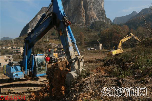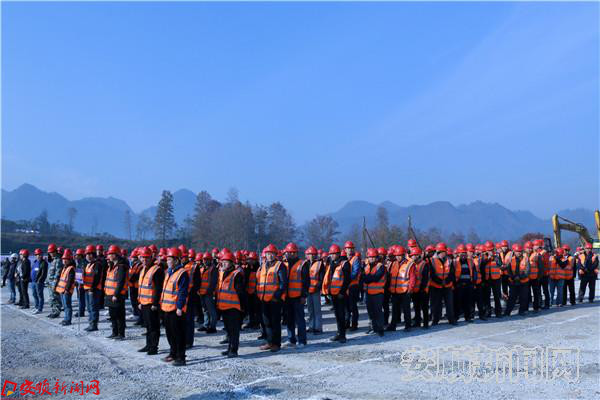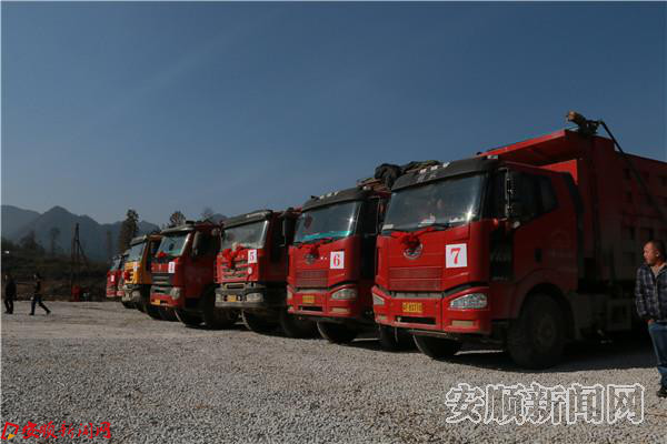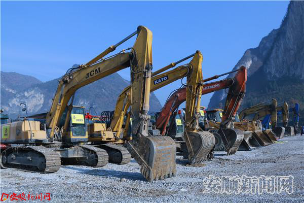 10:00【安顺新闻网】 誓师大会现场,大型机械整齐排列,施工人员整装待发。