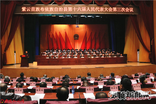 9:01【主持人:张天勇】现在,我宣布:紫云苗族布依族自治县第十六届人民代表大会第三次会议开幕。