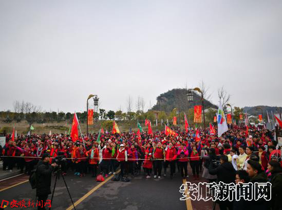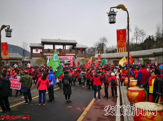 为学习宣传党的十九大精神,以全民健身的文化活动形式贯彻党的十九大精神,唱响新时代主旋律,弘扬正能量,提振精气神,近5000位徒友从四面八方汇集到天龙景区游客接待中心,用脚步开启春节主题游活动。