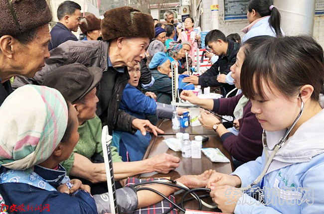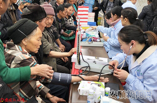 在为群众提供免费测量血压、血糖体检服务的同时,还向他们发放常用药品、毛巾、购物袋等物品。形式多样的安全用药宣传吸引了众多群众前来观看、咨询和体检。当地村民伍贵华老人通过现场测量,得知血压正常后高兴地说道:“这样我就放心了,我身体好,就不用连累儿女,让他们安心在外打拼。希望政府部门多组织开展这样的活动,让我们农村老人清楚自己的身体状况,无病放心,有病早治疗。”