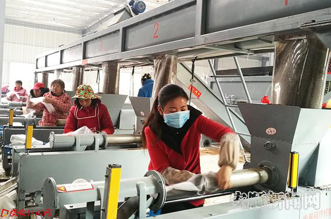 3月1日,在该镇食用菌产业基地木山堡村菌包厂内,来自附近村寨的农民工们聚集在一起放袋、封口、贴标,生产繁忙。据了解,去年年初,在当地政府与引进企业的协作下,该菌包厂开始建设,现已正式投产,菌包厂里生产的菌包供应全镇的食用菌基地,目前主要生产香菇菌棒。