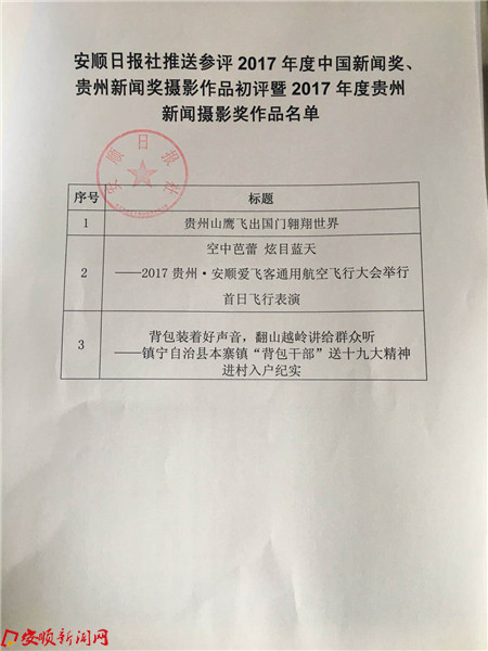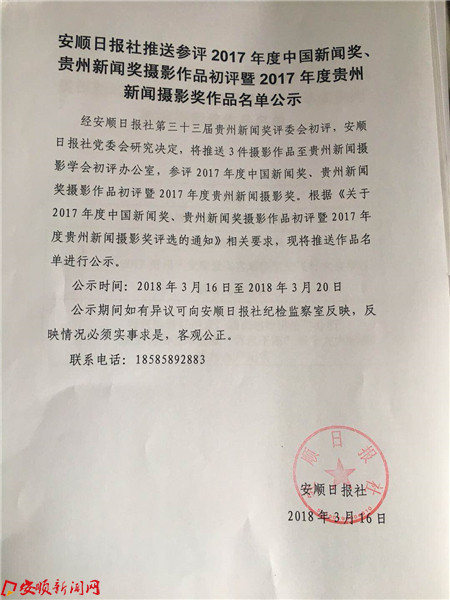 安顺日报参评2017年度贵州新闻摄影奖作品名单公示