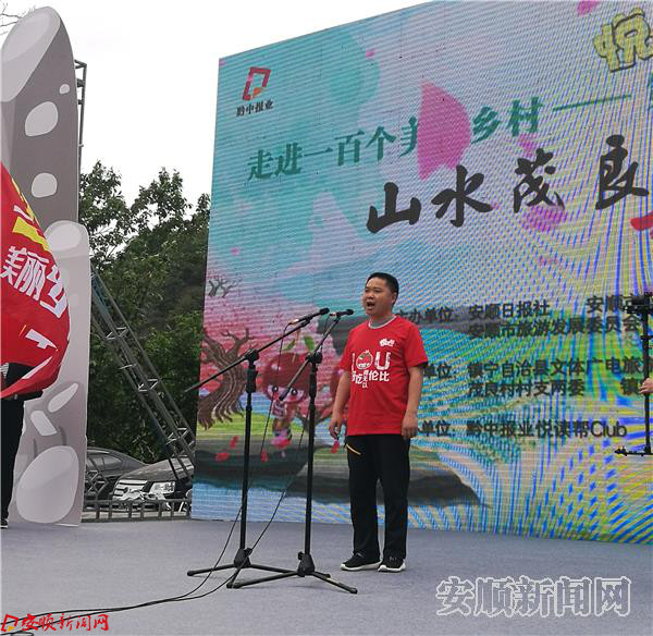 9:50镇宁自治县县委副书记、县人民政府县长潘登岭致辞。安顺市委宣传部副部长、安顺日报社党委书记、社长范成荣授队旗并宣布活动正式开始。省市相关领导莅临活动现场。