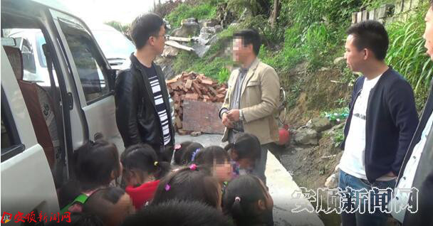 工作中执法人员发现一辆车牌为贵GX70**灰色面包车载满小朋友,且该车未喷涂校车标志,执法人员立即拦截车辆进行检查。