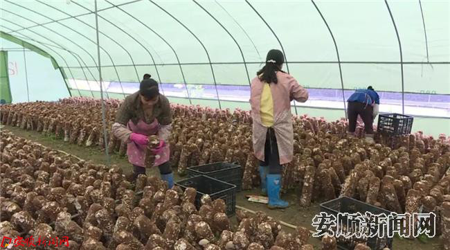 图为工人们正在采摘香菇。(伍婷婷 安顺日报全媒体记者 李隽文/图)