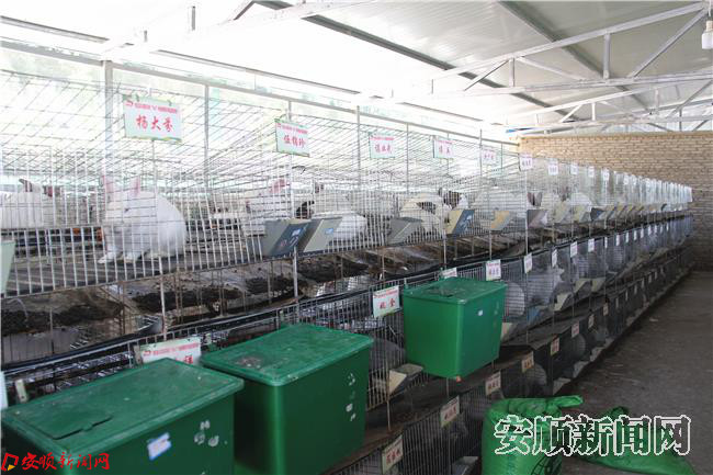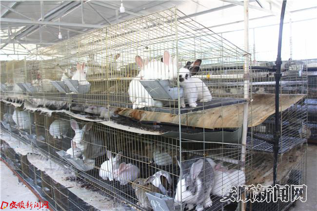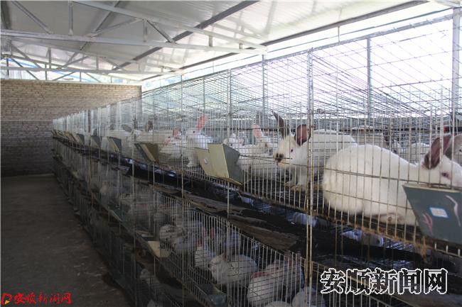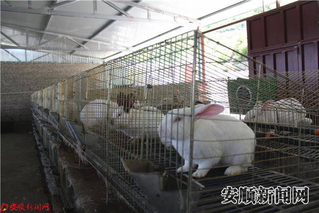 日前,记者在普定马官村“10+2”肉兔养殖项目示范点看到,厂房内,一排排铁笼整齐的排列成3排,一只只肥壮的兔子正在笼子里静静的吃食。据了解,该项目投资30万元,建设兔圈舍450平方米,养殖种兔720只,预计每年出栏商品兔4万多只,带动当地60户贫困户以产业发展基金入股该示范点。