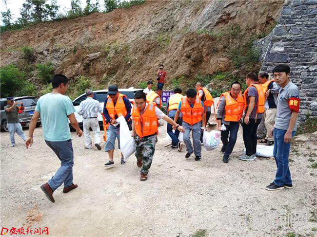 根据演练方案,及时启动汛期安全生产应急预案,迅速成立应急救援抢险指挥部,并按照应急预案迅速组织60余名抢险队员赶赴现场救援抢险。抢险现场抢险队员挖砂、装砂、扛砂袋,通过在决口处用编织袋装砂进行堵塞,排除险情;技术组通过通信设备通知下游群众安全撤离,并启动水库泄洪闸门,降低水库水位;救护医疗组实施伤员救治;安全保卫组带领下游群众安全撤离。