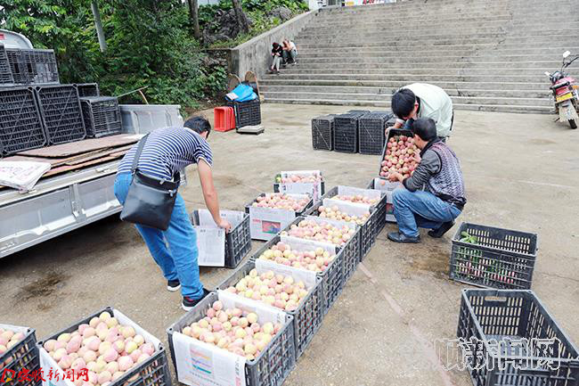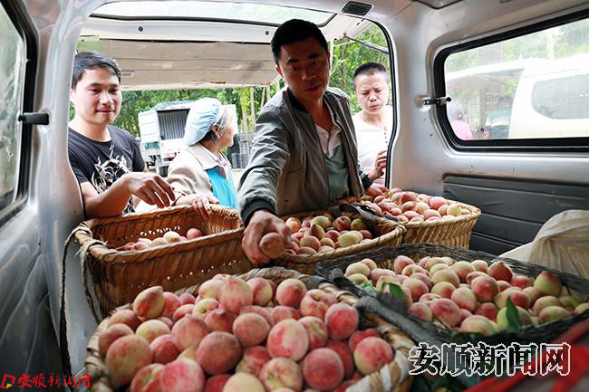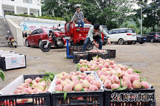 连日来,镇宁自治县马厂镇千亩武昌桃成熟上市,吸引各地采购商纷竞抢购。据了解,马厂镇种植武昌桃4000余亩,其中3000亩已达到盛产期,集中分布在该镇龙滩村、下巴地等村,武昌桃已成为当地农户主要的脱贫致富产业。(安顺日报全媒体记者 伍水清 摄影报道)