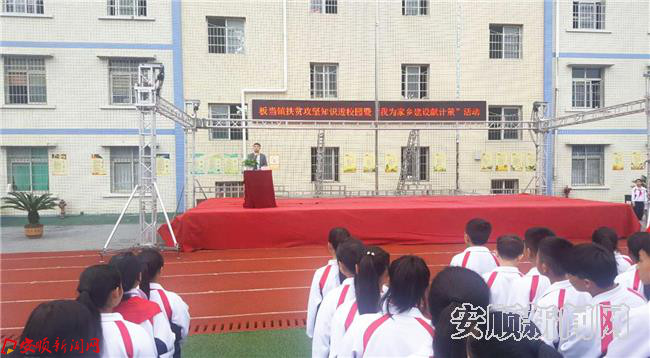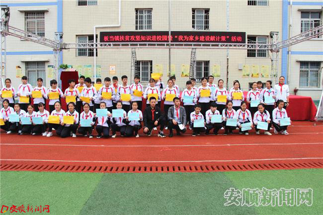 6月1日,紫云自治县板当镇团委、扶贫办、关工委联合板当中学开展了板当镇扶贫攻坚知识进校园暨“我为家乡建设献计策”活动。