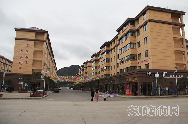 走到鑫旺大市场易地扶贫搬迁安置点,一排排商铺整齐排列,部分大型商场也落户在此。从全县各自乡镇搬迁到定南街道鑫旺社区的群众将扎根于此,搬离大山,过上城里人的生活。从鸡场坡乡纳支村搬迁到鑫旺社区的华月,不仅感觉生活环境发生了巨大变化,如今社区帮助自己解决了就业问题,让华月实现了赚钱和照顾家庭两不误。
