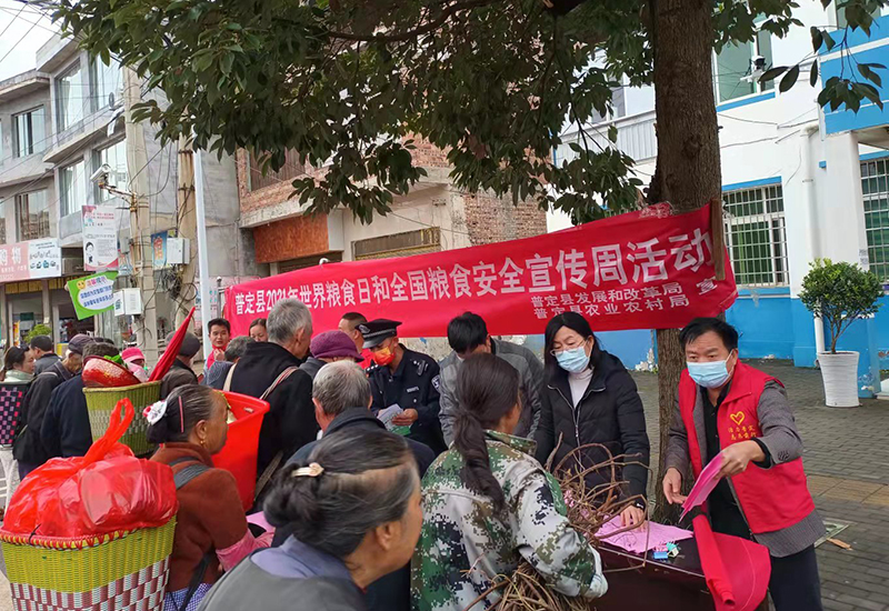 此外,培训当天,工作人员还利用乡镇赶集的时机,在马场镇开展了普定县2021年世界粮食日和全国粮食安全宣传周活动,通过发放宣传册、展示宣传展板等方式为广大群众普及珍惜粮食的重要性和储放粮食的正确方法,全面提高广大群众“反对浪费、节粮减损”的意识。