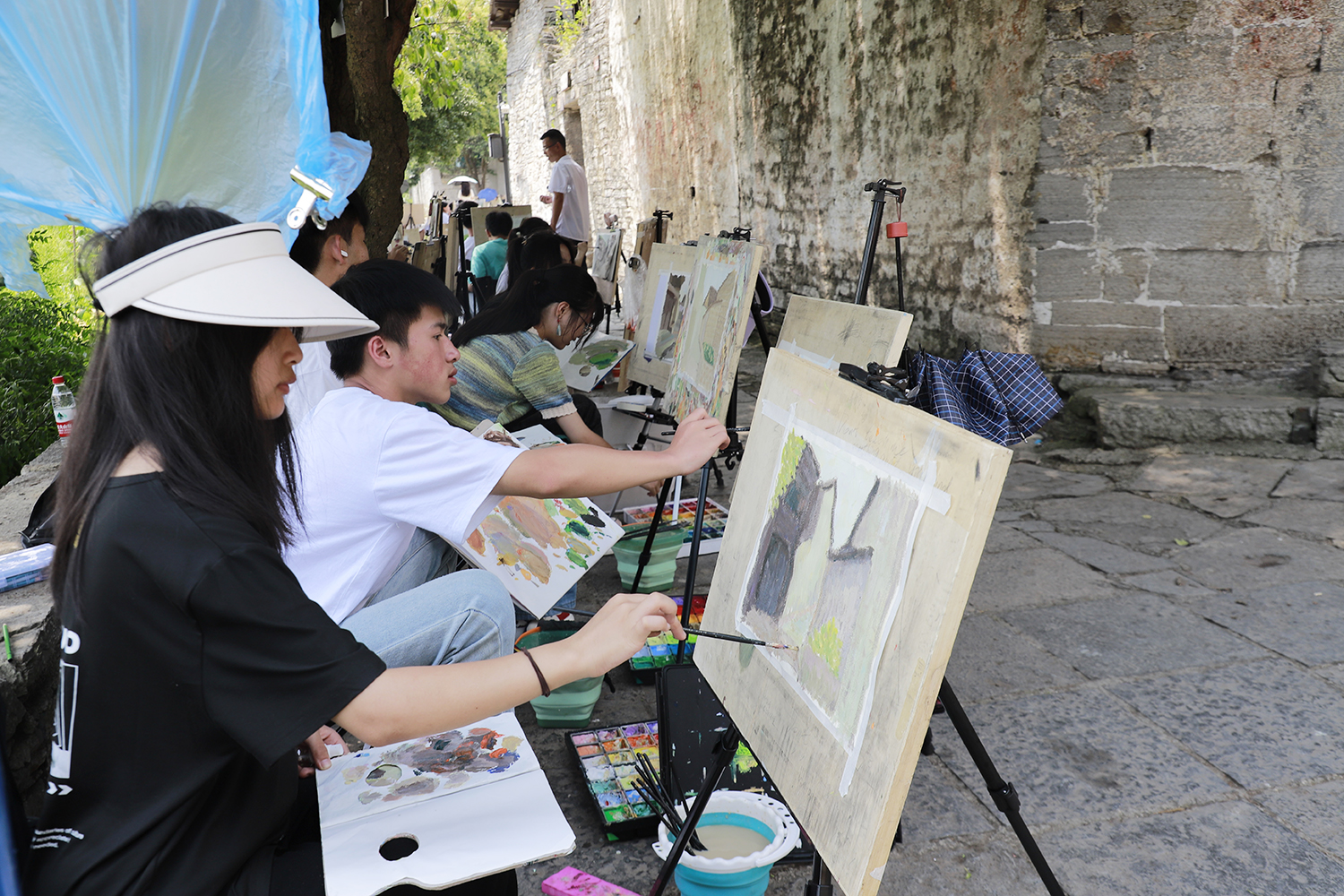 8月18日,来自贵阳的100位绘画艺术生来到西秀区七眼桥镇云峰屯堡景区本寨,展开了一场为期两天的写生之旅。本寨悠久的屯堡文化、淳朴的风土人情和秀丽的自然景观为大家提供了丰富的创作素材和灵感。在写生现场,学生们挥毫泼墨,勾勒出古村的质朴与厚重。(安顺日报融媒体中心记者 胡典 摄)
