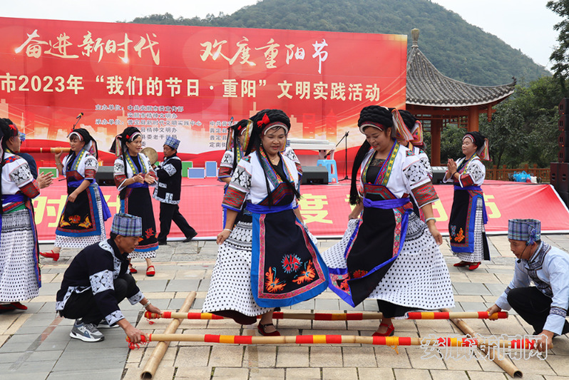 10月23日,为进一步发挥传统节日在弘扬中华民族优秀传统文化和培育社会主义核心价值观中的重要作用,由中共安顺市委宣传部、安顺市精神文明办主办的安顺市2023年“我们的节日·重阳”文明实践活动在普定县沙湾景区铜鼓广场举行。