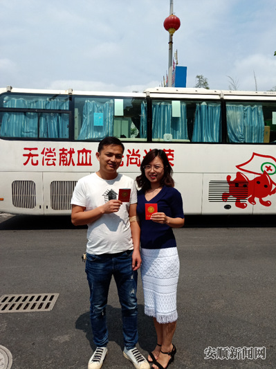 魏珊夫妇献血留影