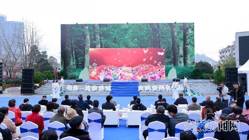 活动现场,进行了《盛世年华》《山水贵客》《安顺遇见》等歌舞表演,优美的舞蹈和醉人的歌声将此次活动推向高潮,随后,在众人的见证下,2023首届贵州·黄果树旅游商品博览会暨2023多彩贵州名优产品暖冬购物节正式启动。