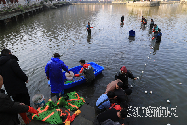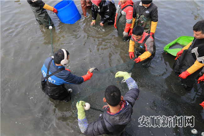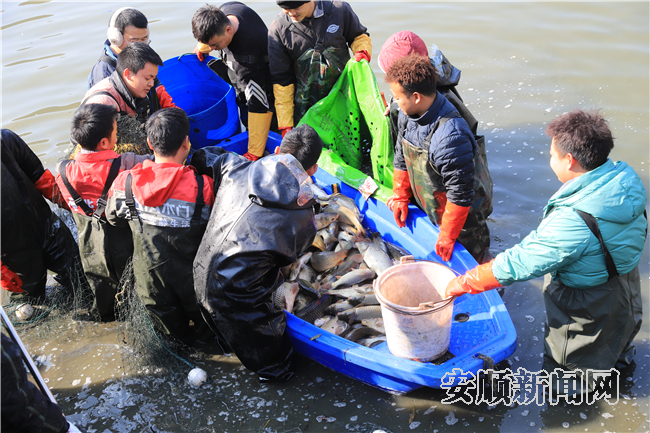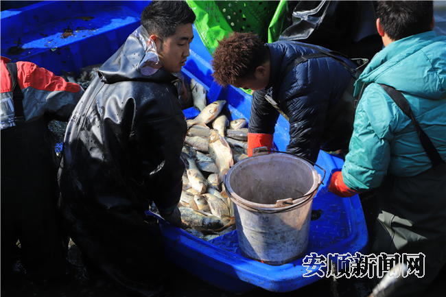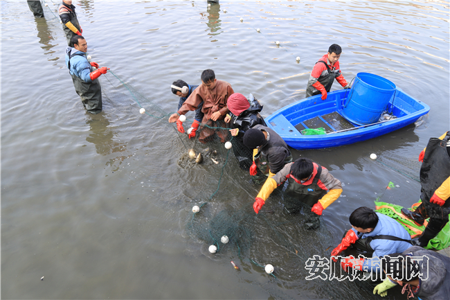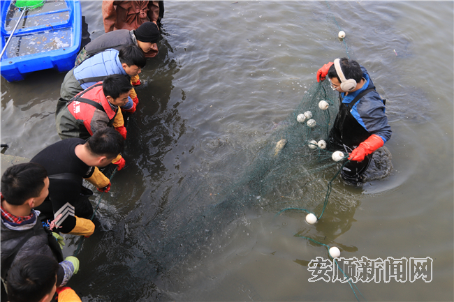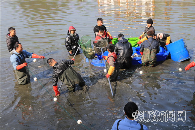 12月25日,经开区十里荷塘桃花岛钓鱼岛举行放冬塘捕鱼活动。据介绍,每年入冬后,村民都会合作捕鱼,收成好的时候一次能捕到上万斤冬鱼。 捕鱼现场,村民下水,将渔网从鱼塘的一端拉到另一端,然后逐渐围成一圈在慢慢向岸边靠拢,将鲫鱼、鲤鱼、草鱼等大小鱼儿“瓮中捉鳖”。一时间,塘内群鱼欢腾,岸上喝彩阵阵,热闹无比。