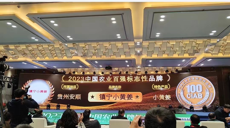 2023年12月29日,2023第九届中国农业品牌年度盛典在四川成都举办。镇宁自治县农业农村局联合贵州镇宁地标农业产业运营有限公司携“镇宁小黄姜”品牌产品首次参会、参展并喜获“2023年中国农业百强标志性品牌”大奖!