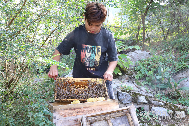 “这块基地有100箱中华蜂,主要出产白刺花蜜和百花蜜。”关岭上关冬足仕荣养殖农民专业合作社负责人杨靖说,近年来,合作社通过生态产业化之路,整合林下蜂宜养林地资源,已打造出5个林下蜂养殖基地,其中关岭本地4个,自养及带动基地周边138户蜂农养殖蜜蜂1000多箱,产品远销省内外,供不应求。