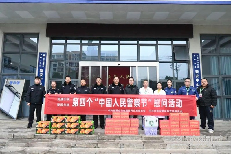 在第四个“中国人民警察节”来临之际,贵医安顺医院分别与安顺市公安交通管理局、安顺市公安局西秀分局举办了“党建引领·警医共建”健康进警营慰问活动,旨在为公安人员送上节日祝福,并提升公安人员的急救技能。
