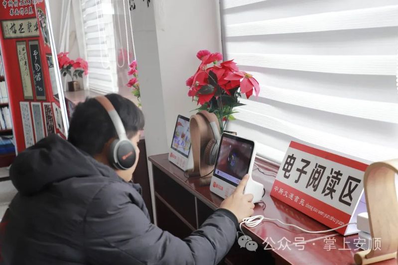 在电子阅读区,中所村村民凌亚峰正利用有声听书机仔细听着《三国演义》。“用听的方式不仅不伤眼睛,还能从声情并茂的朗读中对书了解得更仔细。”凌亚峰说,自文运书苑建成以来,他经常来这看书和听书,最喜欢看的是历史类书籍,通过对历史以及安顺地戏人物的了解,帮助他提高了地戏表演的水平。