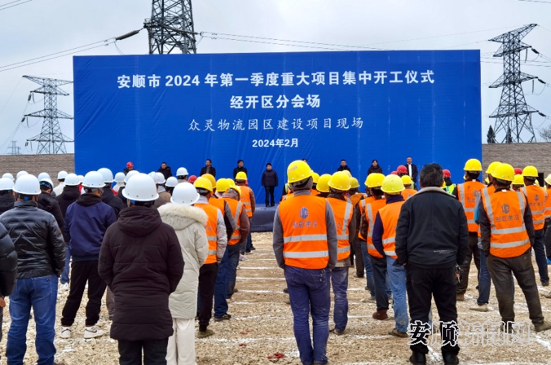 2月28日,安顺市举行2024年第一季度重大项目集中开工仪式,安顺经开区在贵州航空产业城航空装备制造配套基础设施建设项目、众灵物流园区建设项目现场同步举行开工仪式。市人大常委会副主任、安顺经开区党工委书记代敏宣布开工。