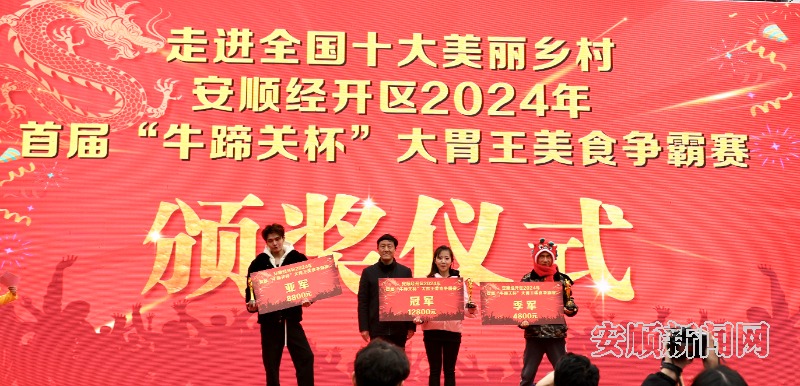 最终,来自河北的参赛选手赵红岩以4分21秒的好成绩获得总决赛第一名,获得大胃王美食争霸赛冠军。赵红岩说:“今天我也是超常发挥,拿到奖励很开心。还能感受一下贵州的长桌宴,感觉特别热闹。安顺风景也特别好,玩得很开心。美食也很好吃,比如远近闻名的幺铺毛肚火锅等,欢迎大家来这边玩。”