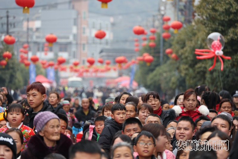 3月3日,在安顺经开区幺铺民国风情街,这里张灯结彩,人潮涌动,吸引了近五万名游客和当地群众共襄盛举。“龙腾盛世 欢乐安顺 活力经开”迎新春系列活动——首届“牛蹄杯”村(居)拔河挑战大赛、首届“牛蹄关杯”大胃王美食争霸赛总决赛暨春季旅游系列活动启动仪式在这里举行。市人大常委会副主任、安顺经开区党工委书记代敏出席。