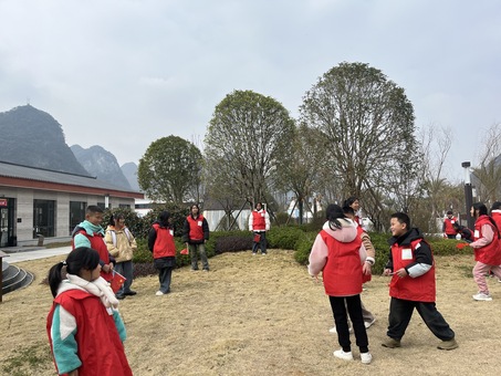 活动当天,社工向组员介绍了本次春令营的活动内容及目的,与学生开展深入交流,探讨了学生对于此次春令营的了解与期望。紧接着,学生进行分组抽签,再由小组之间选出组长进行主题抽签,确定本组的主题并进行理解分享,本次共有活动六个主题,分别是“黄鹤营的故事、温泉的由来及意义、黄鹤营的未来规划、黄鹤营度假村的产业有哪些、黄鹤营对于紫云发展的影响、用三句话形容你看到的黄鹤营”,各组抽中主题签之后经过组内讨论将抽象的话变成“黄鹤营为什么叫这个名字”“温泉是从哪里来的”“这个地方有什么可以赚钱的产业”等等可探索的问题。讨论结束后,社工组织学生进行快慢行走游戏,引导学生之间互相认识,消除彼此之间的陌生感。
