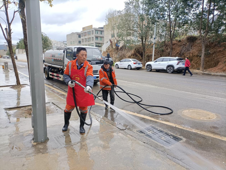近日,紫云自治县城管局集中环卫力量,细化作业标准,组织开展城市“大擦洗、大冲洗”行动,进一步营造干净、整洁的市容环境。