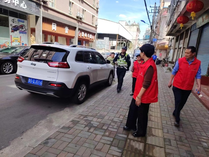 近日,安顺经开区星光社区服务中心依托新时代文明实践所,开展背街小巷车辆不乱停乱放劝导志愿服务活动,进一步规范金竹街、兰靛街等背街小巷的停车秩序,保障道路安全畅通,提高广大居民和司机文明交通意识。