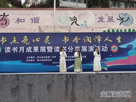 4月23日是第29个世界读书日。近日,贵州省乡村名师张金婵工作室、紫云自治县第一中学、紫云自治县文联、紫云自治县图书馆联合在该县一中举办了主题为“读书点亮心灵 书香润泽人生”的读书月成果展暨读书分享展演活动,该县一中全体师生参加。