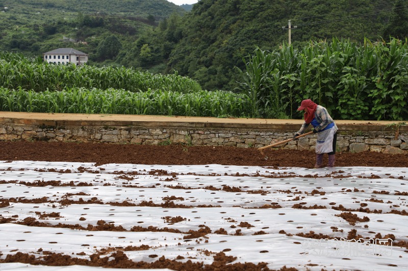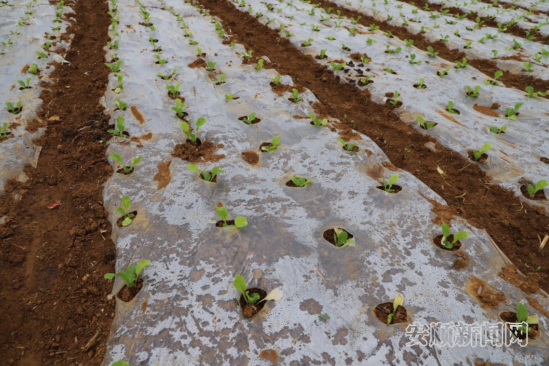 时至盛夏,万物繁茂。在平坝区乐平镇大屯村蔬菜种植基地里,村民们正在忙着种植二茬白菜,现场运苗、施肥、移栽、盖土、覆膜……忙而有序,手起铲落之间,一株株幼嫩的白菜苗被移栽进土里。