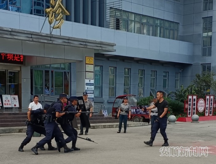 7月22日,记者从平坝区公安局获悉,为确保辖区内医院安保力量快速、有序、高效应急处置,筑牢医院安全“防火墙”,平坝区公安局特(巡)警大队在平坝区人民医院针对性开展反恐防暴演练。